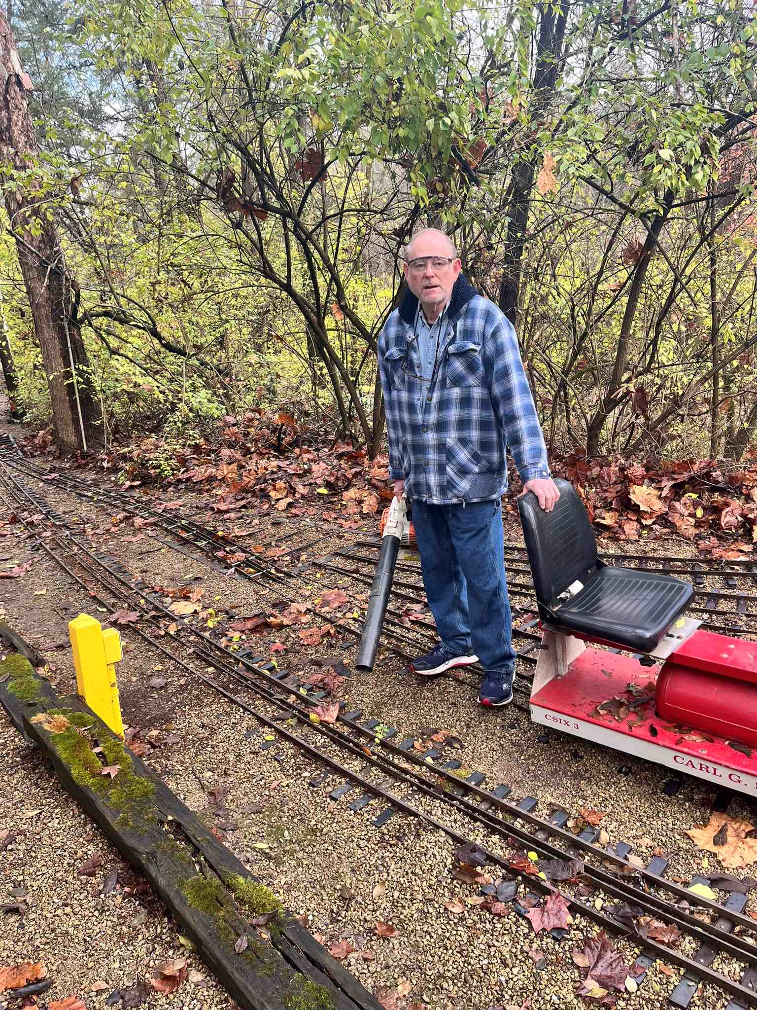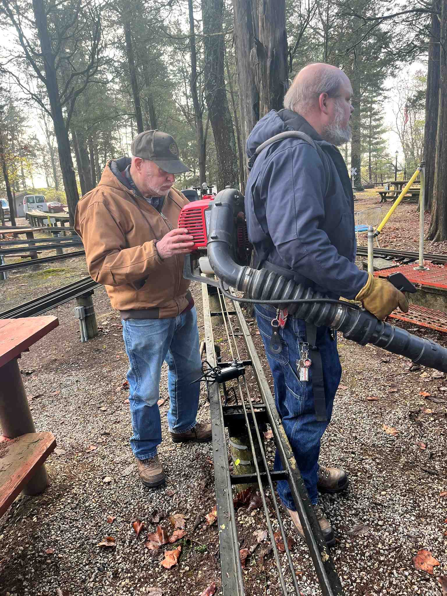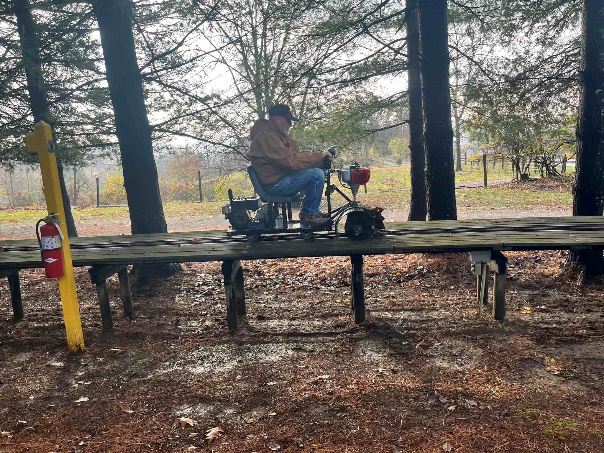 Though the tunnel was not as smoky inside as one might expect, in one day we went from having three sections joined together to seven. There is light at the end of the tunnel, even if you can’t see all the way through anymore. We weren’t limited to four people – that was just the capacity that could be in the work area at one time. Chuck B, Steve C, Brodie C, Ed H, Denis L, and Dave S all rotated through the crew, while Roger H, Jim K, and Bill M were involved in other things about the property. Jon P was elected an ex-officio member of the crew for coming to the track before the previous run to fill the fire extinguishers.